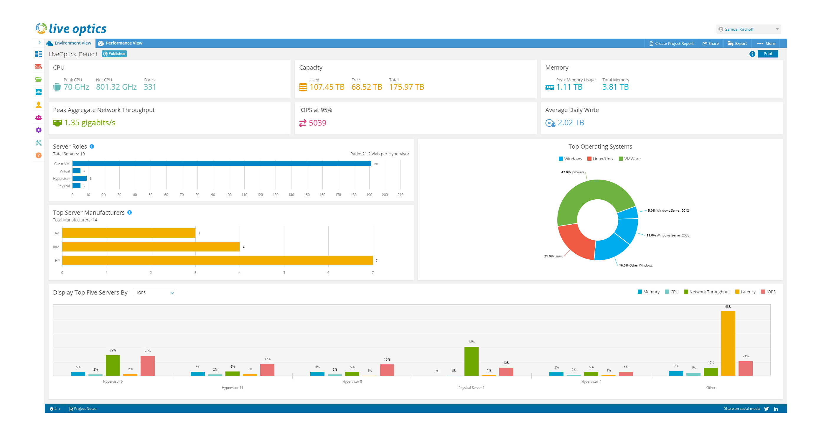 Live Optics 的工作负载特征分析具有供应商、硬件和平台中立性。它还收集和分析来自业内主流操作系统、硬件和虚拟环境的数据。
